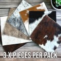 Genuine Cowhide Swatches - 3 x PIECES per pack - 20 x 20cm (8" x 8")