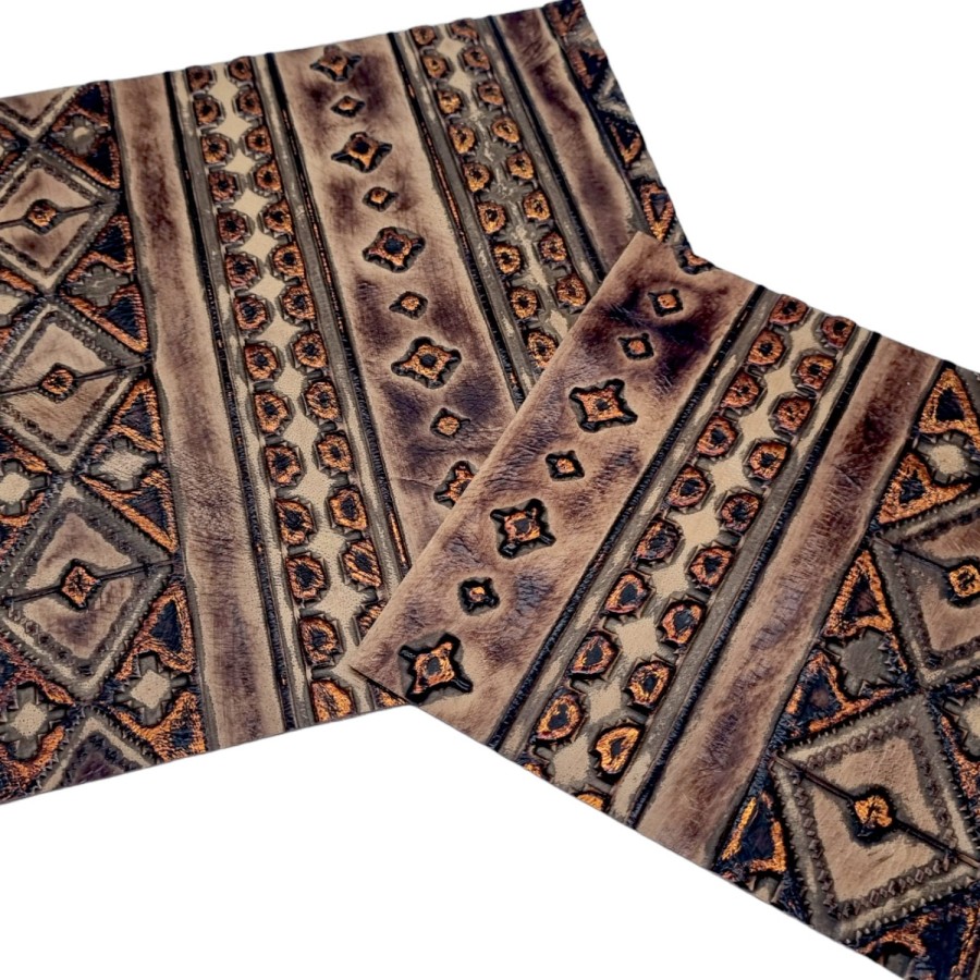 Genuine embossed Aztec leather | Navajo Brown, black and Copper | Various sizes available