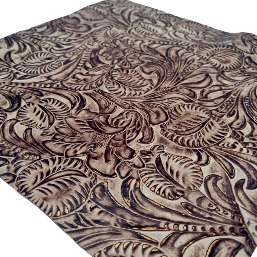 Genuine embossed leather | Floral pattern | Ivory chocolate - Various sizes